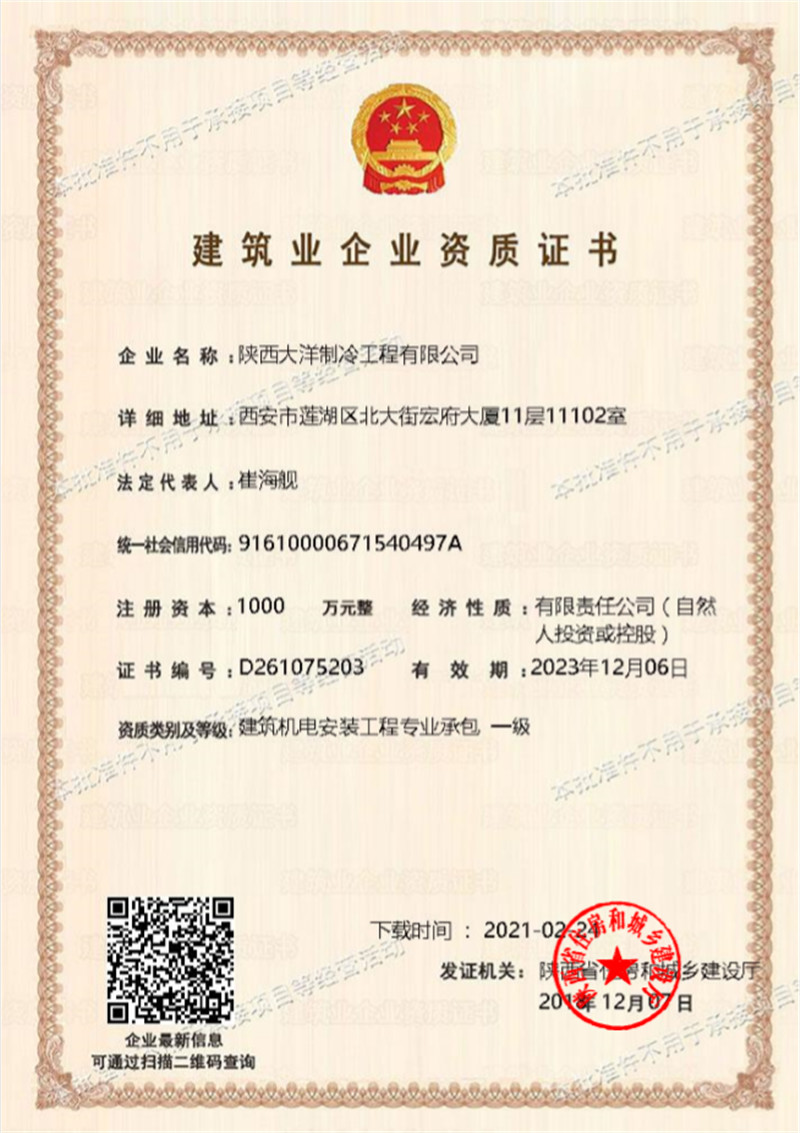 山東大洋制冷 · 資質證書